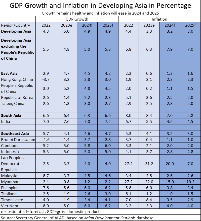The Asian Development Bank (ADB) published projections of the economy of developing Asia and the Pacific region last month, estimating that the economies of the region will increase 4.9% this year and the following year. The inflation will continue to decelerate 3.0% next year.