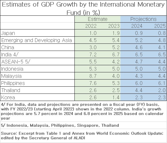 Source: The Secretary General of ALADI based on the Asian Development Bank and the International Monetary Fund