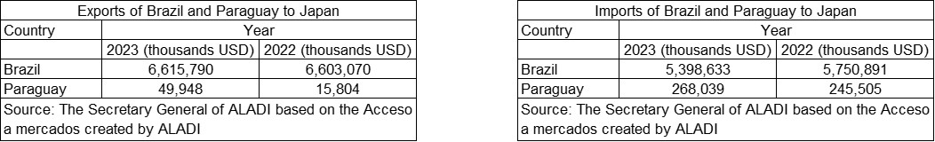 In the case of Paraguay, one of the signed MoUs covers the areas of information and communication technologies, foreign trade organizations, peaceful space activities, and cooperation for improving the country’s road infrastructure. The Paraguayan authorities also talked with Japan Foreign Trade Organization (JETRO) on opening the Japanese market to Paraguayan beef. It is worth noting that the Japanese International Cooperation Agency (JICA) carries out important work in Paraguay. In 2023, Paraguay exported to Japan approximately 50 million dollars and imported approximately 268 million dollars. Japan ranked the sixth destination among Asian markets for Paraguayan products in 2023.
